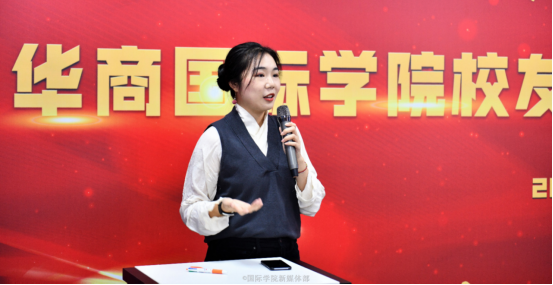 Then followed thespeechofDean YuHuifen.Firstly, shesaidthat althoughthe International School hasonly two classes of graduates, the alumni havemadesatisfactoryachievements.She thought theexcellentperformance of the alumnireflectedthe stage result ofthe international education of Huashang College.In addition, she hoped that the alumni association, while performing its regulartasks, would become a platform for tellingalumni successstories and promoting cultural exchanges between China and other countries.At last, she expected thealumniwouldmake success andadd luster to AlmaMater and the motherland.