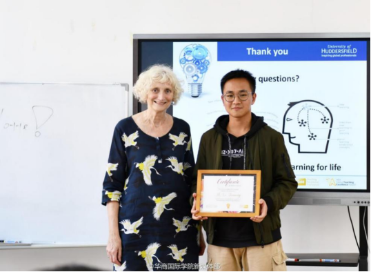 The Pre-admission Notice Awarding Ceremony for the University of Huddersfield, UK (UHD) was held in the Qizhi Building on 29th October, 2019. Professor Ann Harris, representative of UHD; Miss Yvonne, representative of the Guangzhou Office of UHD and Mr. Wang Wenzhong, Director of International Exchange & Cooperation Office attended the ceremony.