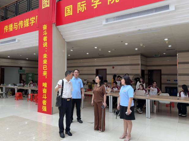 In September, the International School at Guangzhou Huashang College welcomed the 2024 cohort of new students, including high school graduates and transfer students from junior colleges. The Dean of the International School, Hui Yanyan, the Party Branch Secretary Yang Lijun, along with faculty, staff, and volunteers, warmly greeted the newcomers with great enthusiasm. School leaders also visited the scene to extend their regards to the teachers and students involved in the orientation activities at the International School.