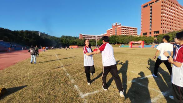 In the women’s 4x100 meter relay final, the team composed of Huang Yasheng (Class of 2022, International English Program, Upgrading Class 1), Shi Ruini (Class of 2023, International English Program 1), Liu Xile (Class of 2023, International Economics and Trade Program 1), and Jiang Yiran (Class of 2024, International English Program) transformed the relay baton into a symbol of trust and strength. They sprinted fiercely on the track with every baton exchange demonstrating close coordination. After intense competition, they won a commendable second place.
