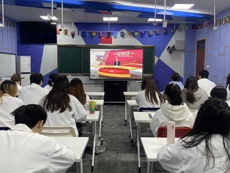 To thoroughly study and implement General Secretary Xi Jinping's series of new ideas, perspectives, and conclusions on comprehensively deepening reforms, the International School organized a training session for faculty and student Party members on the evening of December 18, 2024, in Room 401 of Qizhi Building. Comrade Hao Zixiu, a counselor at the International School, led 42 faculty and students in studying a special video titled "In-Depth Study and Implementation of General Secretary Xi Jinping's New Ideas, Perspectives, and Conclusions on Comprehensively Deepening Reforms and the Spirit of the Third Plenary Session of the 20th CPC Central Committee."