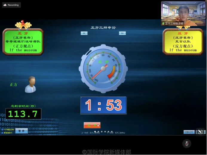 In the final stage, debaters centered around the topic: “if a museum catches fire, a famous painting and a cat, you can only save one. which one will you save?”. The pro side supported “If the museum catches fire, save the cat”. Their main points are: the greatest value of life is living, while saving the cat is a better manifestation of life’s value. But the con side stated that “if the museum catches fire, save the painting”. Their main points are: the value of art does not only exist in the person who creates the art, but also is reflected on those who have respected and protected the art from generation to generation.