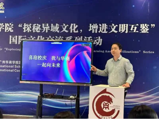 威廉希尔williamhill中文直属党支部书记兼辅导员杨李军老师担任主讲。举办校庆活动的主要目的:一是凝聚人心,在回顾学校发展历程的同时,让同学们更加珍惜现在学习的机会,共同为学校的未来发展努力奋斗;二是展望未来,大家共同探讨学校未来的发展方向和目标,为学校的可持续发展献计献策;三是传承文化,了解学校的办学理念、历史传统和文化底蕴,进而更好地融入学校的文化氛围;四是激励学生,通过表彰优秀学生和展示学校的成就,激发华商学子的荣誉感和归属感。