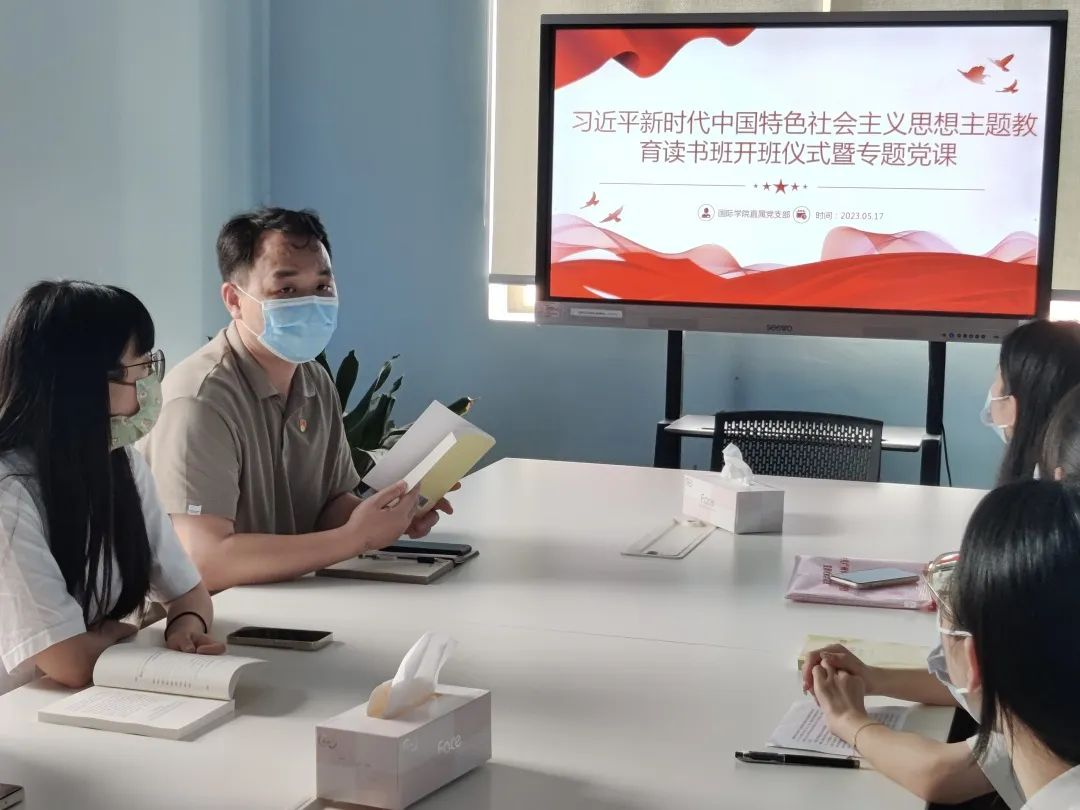 为深入开展学习贯彻习近平新时代中国特色社会主义思想主题教育,扎实落实全体党员思想教育工作,引领同学们将习近平新时代中国特色社会主义思想铭于心,融于魂,践于行。华商威廉希尔williamhill中文直属党支部组织全体党员于2023年5月17日在启智楼408开展了“习近平新时代中国特色社会主义思想主题教育读书班开班仪式暨专题党课”。本次学习由华商威廉希尔williamhill中文直属党支部杨李军书记主持。