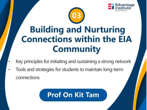 On Kit Tam教授以“在EIA社区内建立和培养联系”为主题,讲述了启动和维持强大网络的原则,以及学生如何利用工具和策略保持长期联系。
