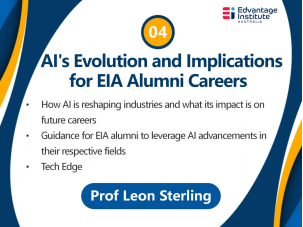 Leon Sterling教授以“人工智能的演变和对EIA校友职业的影响”为主题,阐述了人工智能如何逐渐改变传统行业,以及这种演变对未来职业发展所带来的深远影响。他以独到的见解和丰富的案例,分享EIA校友如何在各自的领域中充分利用人工智能技术增强工作技能、提升自身的工作效率。