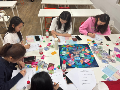 在模拟人生游戏中,参加的同学们踊跃参与并很快进入角色,他们谨慎地面对机遇和挑战,并根据自己的身体和财富状况以及年龄,进行投资和风险防控。整场活动气氛热烈,各小组不断传来成功的欢笑、获得意外收获的喜悦以及不同选择所带来效果的诧异。