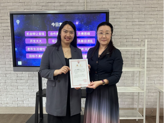 回雁雁院长为付慧芳女士颁发主讲嘉宾证书