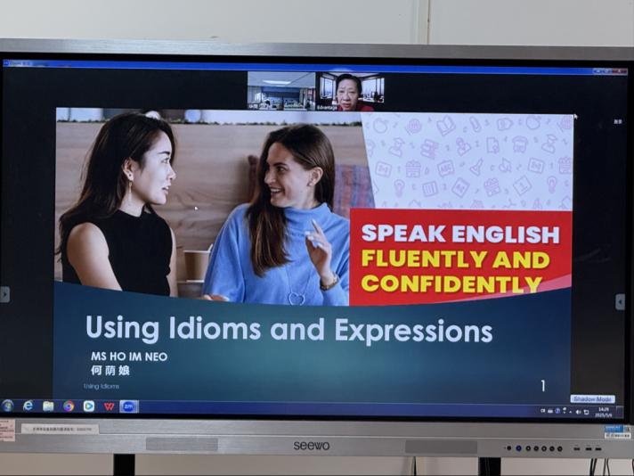 讲座伊始,Ho ImNeo女士指出俚语是表达的特殊形式,掌握其非字面含义是提升英语流利度的关键。针对学生需求,主讲人分类解析了教育学习中的经典俚语,例如“hit the books”(努力学习)等适用于描述学习过程;“ace the test”(考试成绩优异)等,精准对应考试冲刺与成果表达;“draw a blank”(记不起)、“beat around the bush”(绕圈子说话)等,覆盖了日常交流中的常见场景。