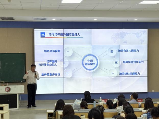 为此,张宁理事长基于威廉姆·亨特的同心圆模型,提出国际胜任力培养的"三层实践路径":以开放包容的价值观为根基,通过模拟联合国等实战训练锻造跨文化协作等八项核心能力,最终构建"学科交叉+语言赋能+AI应用"的高校培养生态,破解专业能力与国际素养失衡的发展困境。