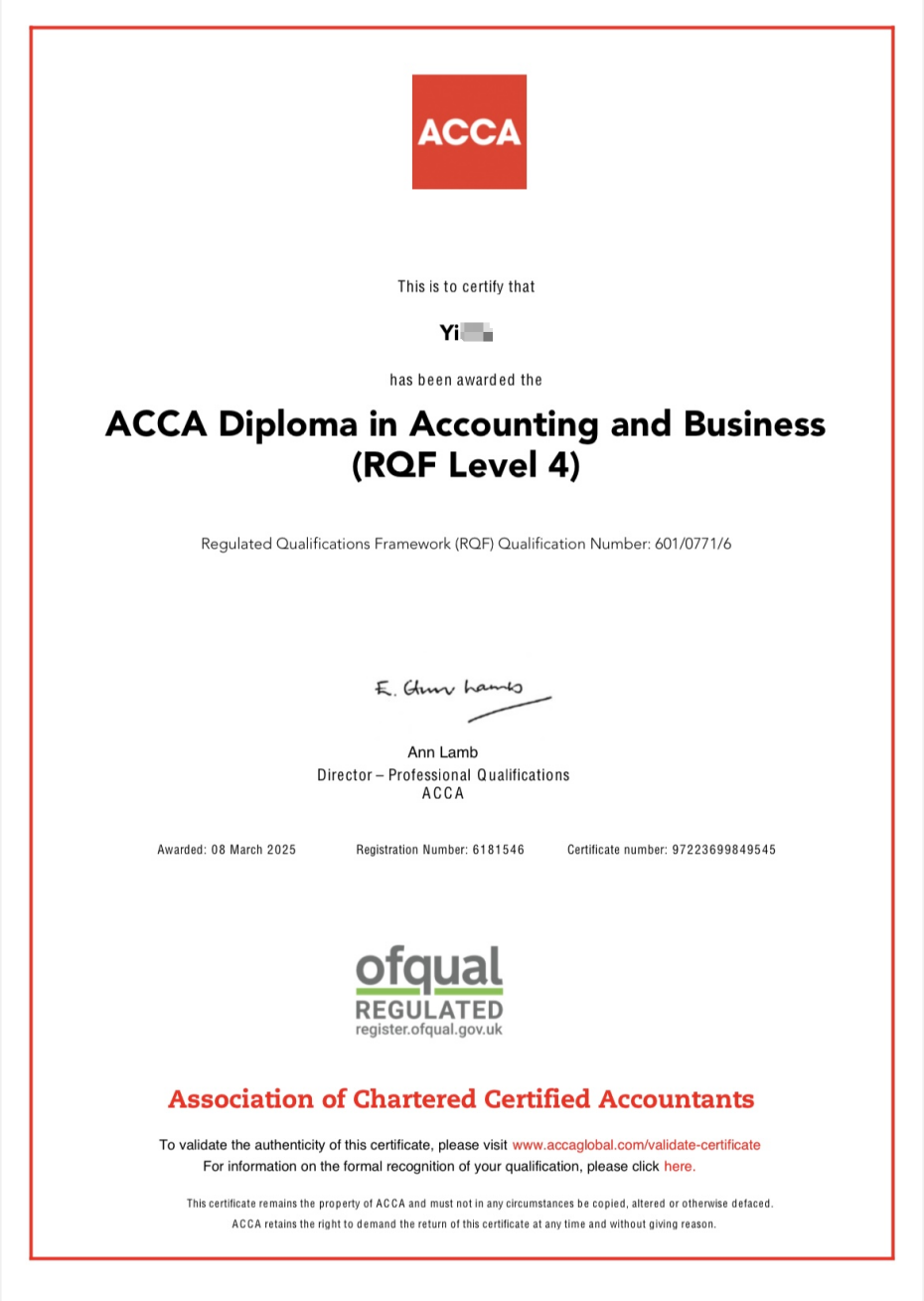 余意同学表示,她将继续努力,有决心早日通过ACCA的全部考试科目。她的优异成绩也为班级同学树立了榜样,激励着更多同学努力备考,争取在ACCA考试中取得优异成绩。