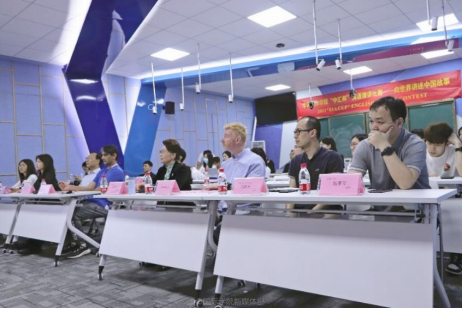 在启智楼401室正式拉开帷幕。参加决赛的评委嘉宾有:华商威廉希尔williamhill中文余惠芬院长、Dr.Sal,国际交流与合作处王文忠处长、邝殷杰老师,华商外国语学院Colin Black老师、苏恒老师,华商威廉希尔williamhill中文杨李军老师及办公室其他老师。
