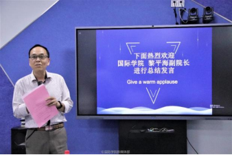 王文忠处长对选手们良好的表现予以表扬,同时也指出他们在演讲过程中存在的不足之处,如语调单一、发音错误等。他现场分享了一些演讲技巧:①充分利用过渡词、连接词使演讲内容紧凑完整,便于观众理解;②使用象征词、关键词,尽量规避发音及语法错误;③善于利用肢体语言,包括手势及眼神交流;④发现表达错误时尽量避免重复,可稍作停顿,将表达的流利度放在第一位;⑤克服紧张心理,保持自信。
