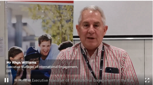 比赛正式开始前,现场循环播放来自澳大利亚中汇学院(EIA)国际事务部执行经理Mr Rhys Williams对决赛选手们的祝贺鼓励视频。
