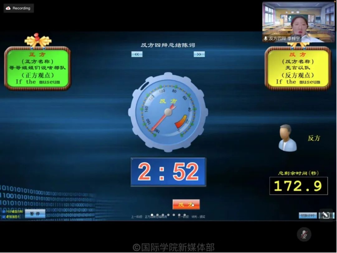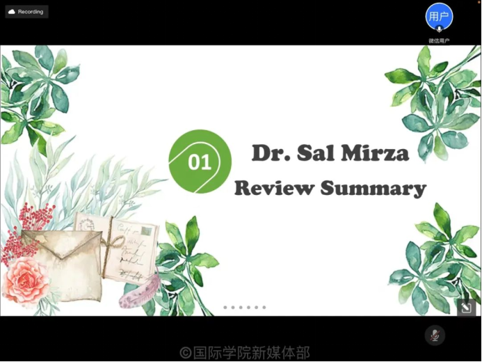 威廉希尔williamhill中文外教Dr. Sal Mirza对决赛进行点评。Dr.Sal认为这是一个非常难的辩题,但是在这场辩论赛中双方都表现得很出色,比赛扣人心弦,可谓精彩纷呈。随后,他指出在线上辩论赛中,声音是极为重要的一点,必须确保你的声音蕴含的情感足够丰富,让观众们被你打动。最后,他对辩手们的精彩表现给予了认可,希望同学们再接再厉。