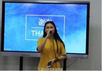 精彩的点评环节过后,迎来了轻松愉悦的才艺表演环节,16级英语国际班孙一凡同学展示了一段有趣的Talk Show, 她通过举例子的方式生动形象地让在场观众们了解到英语发音的奇妙之处。詹雅妮同学带来了一首《星月神话》,她婉转悠扬的歌声,悦耳动听,令人沉醉。